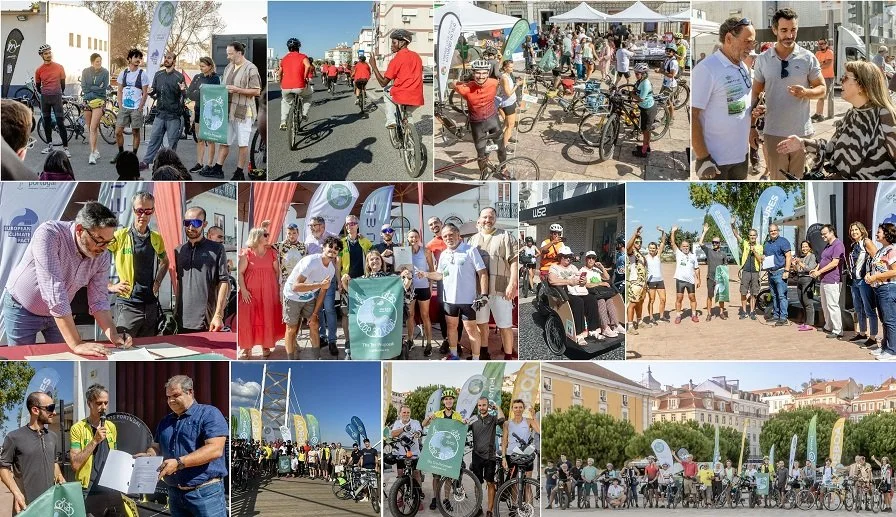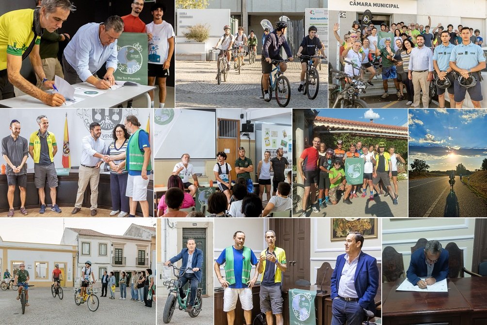 Com eleições autárquicas logo a seguir, sabíamos que seria uma difícil tarefa, sobretudo na relação com os responsáveis dos municípios em que iríamos passar. Mas, muitos contactos, suor e horas de trabalho depois, a 28 de Setembro lá estávamos na fronteira do Caia, com o apoio logístico da Unfuel e do Grupo MHS, a aguardar os heróis que vinham de atravessar Espanha nas suas bicicletas. E depois foram, não 4, mas 7 dias de grande sucesso, que aqui partilhamos consigo. Além de termos contribuído para a obtenção dos 4 recordes mundiais a que esta edição se propunha, incluindo estafeta de bicicleta mais longa e mais participada, Portugal foi o país com maior número de participantes / dia. E o com maior percentagem de compromissos assinados pelos municípios atravessados.