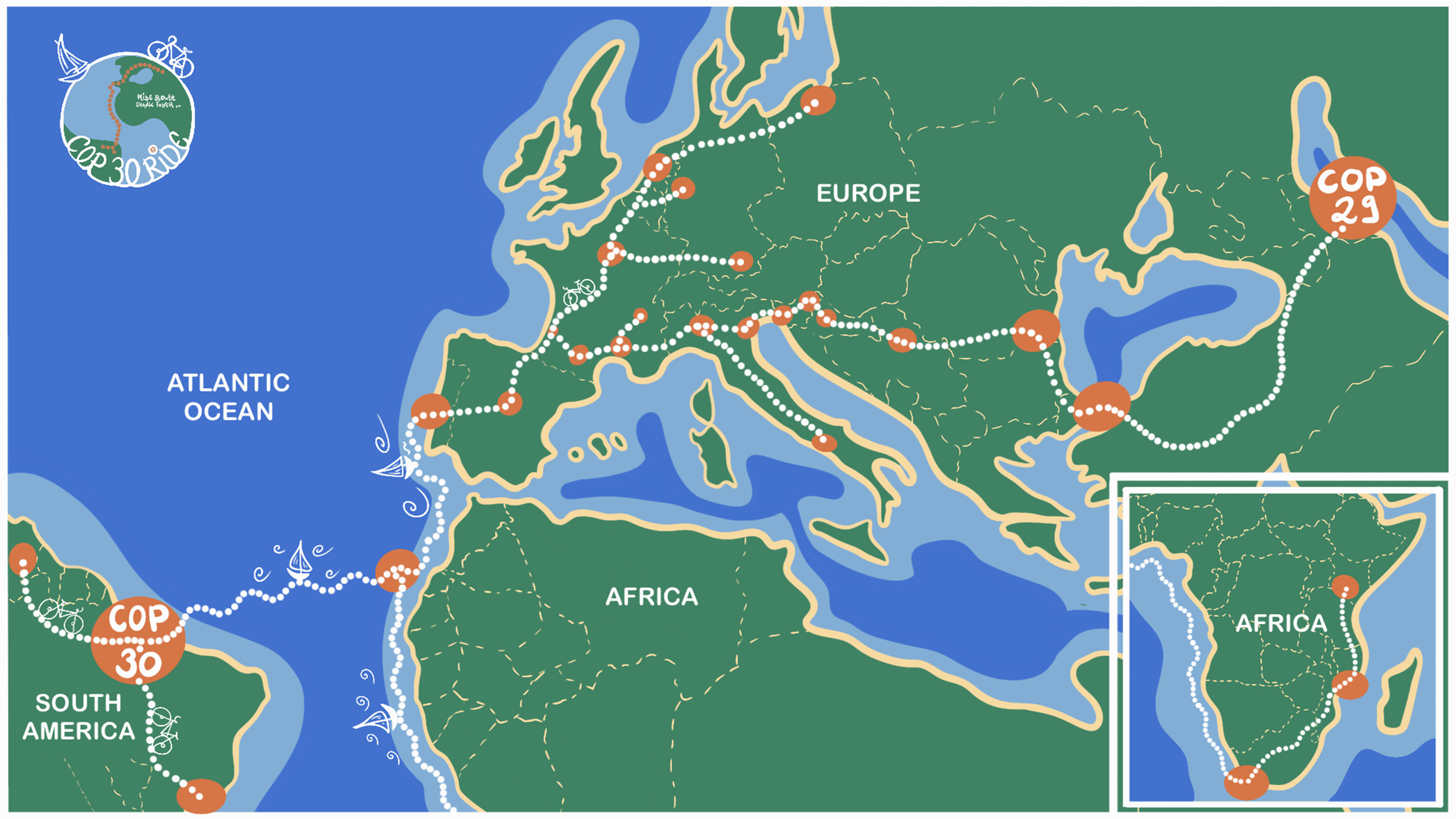 E foi assim que, em Maio de 2025, os primeiros ciclistas arrancaram do Azerbaijão, numa estafeta que iria terminar em Belém do Pará, no Brasil, no decorrer da 31ª edição da Conference of Parties, a reunião anual da ONU dedicada ao clima e à sustentabilidade.