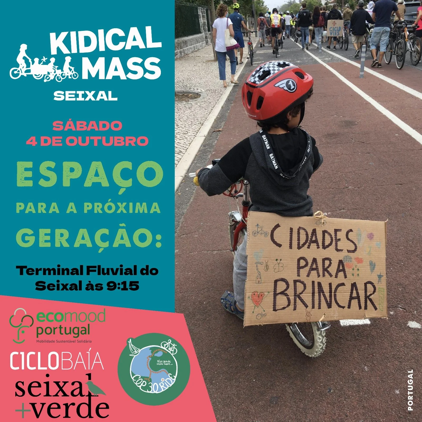 Da mesma forma, no dia seguinte, último da COP30 Bike Ride em Portugal, aproveitámos a ida de bicicleta até à Moita para ajudar a nascer o primeiro Kidical Mass do Seixal.